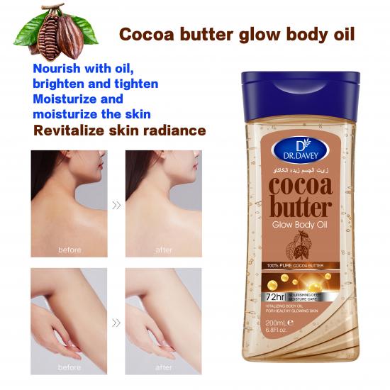 يُعد زيت الجسم المصنوع من زبدة الكاكاو النقية بنسبة 100% مثاليًا لجفاف فصلي الخريف والشتاء: فهو يوفر ترطيبًا عميقًا لمدة 72 ساعة لإصلاح البشرة الجافة والمتقشرة والتخلص من "جلد الدجاجة". كما أنه يغذي البشرة ويشد ملمسها، مما يجعلها ناعمة وطرية ومشرقة - مع تحسينات ملحوظة للمناطق الخشنة (الأطراف والكعبين وما إلى ذلك).