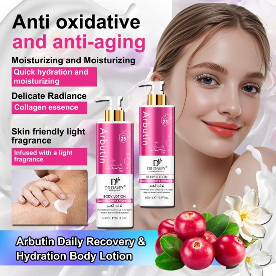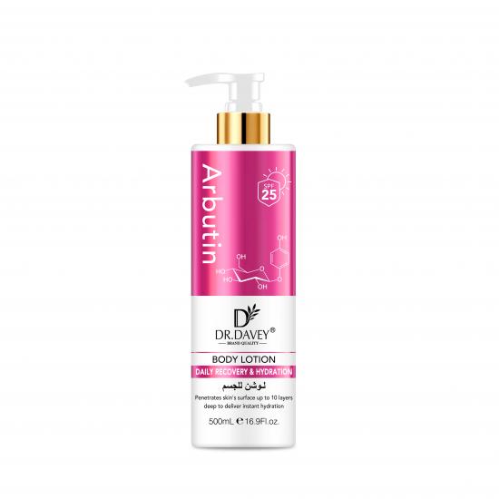 يتميز لوشن الجسم من دكتور ديفي، سعة 500 مل، بتركيبته الغنية بالأربوتين، حيث يوفر ترطيبًا عميقًا من 10 طبقات لمعالجة البشرة الجافة والخشنة (فعالية ترطيب بنسبة 99%، وترطيب يدوم 24 ساعة). كما أنه يمنح البشرة إشراقة ونضارة (تأثير إشراقة بنسبة 99%)، مع إشراقة مستمرة لمدة 12 ساعة للحد من بهتان البشرة. وتوفر تركيبته أيضًا فوائد مضادة للأكسدة ومضادة للشيخوخة (غنية بخلاصة الكولاجين) وحماية من أشعة الشمس بعامل حماية 25، بالإضافة إلى عطر خفيف لطيف على البشرة - مثالي للاستخدام اليومي وتغذية البشرة على المدى الطويل.