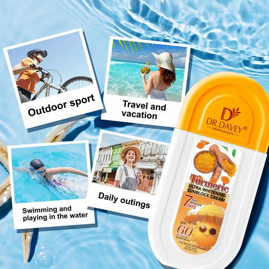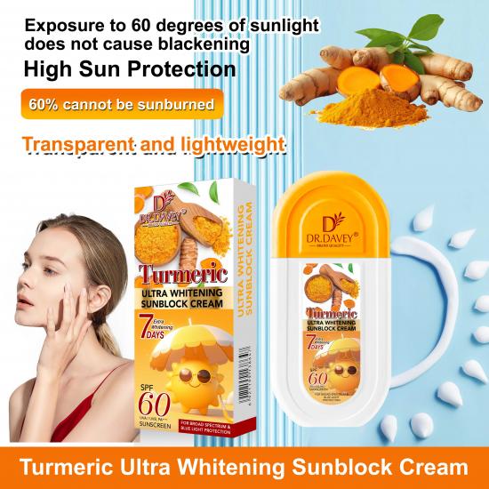 يجمع كريم الوقاية من الشمس هذا بين حماية واسعة النطاق بمعامل حماية 60 وتفتيح فائق للبشرة بفضل الكركم (نتائج ملحوظة خلال 7 أيام). يقاوم الماء والعرق، فعال حتى في ضوء الشمس المباشر بدرجة حرارة 60 أو أثناء ممارسة الأنشطة المائية، ويتميز بقوام خفيف وشفاف (لا يسبب شعورًا باللزوجة أو الاحتقان). مناسب للرياضات الخارجية والسفر والاستخدام اليومي، فهو يحمي البشرة من حروق الشمس والاسمرار وعلامات الشيخوخة الناتجة عن التعرض للأشعة فوق البنفسجية.
