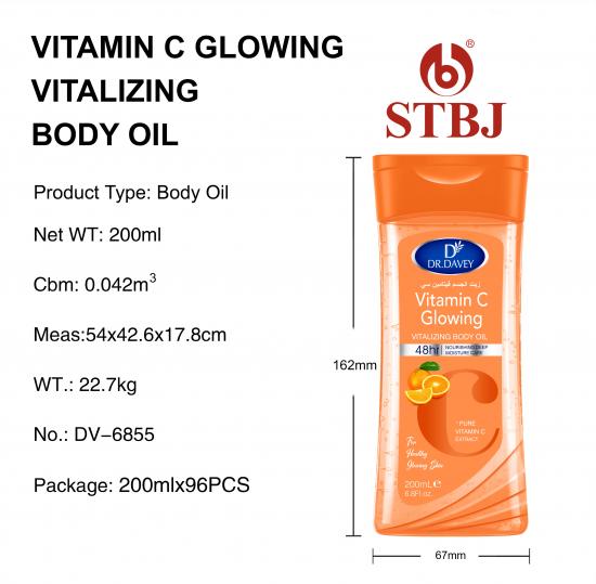 يستهدف زيت الجسم هذا، الغني بفيتامين سي، البشرة الجافة والمتشققة والخشنة (بما في ذلك الجفاف الموسمي): فهو يوفر ترطيبًا عميقًا ليحول البشرة الباهتة والمتقشرة إلى بشرة ناعمة وشفافة في غضون 7 أيام. كما أنه يساعد على إخفاء التجاعيد وعلامات تمدد الجلد الناتجة عن الحمل، مع شد البشرة وتنعيمها للحصول على مظهر صحي ومشرق.